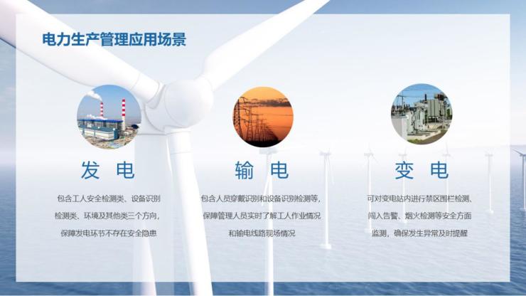 在电力行业的发电、输电与变电环节,通过人工智能算法对线路的缺陷进行分析,可对关键位置人员的值岗状态进行监测。针对无人值守的变电站,可对禁区、围栏实时监测以及对闯入进行告警等,确保发生异常能够及时告警,实现真正的无人值守。