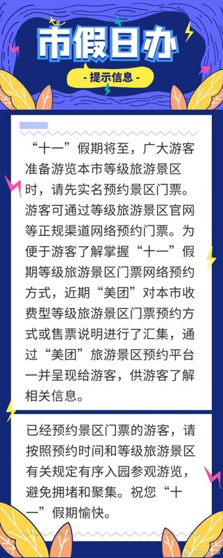北京假日办提示国庆中秋假期游览景区可先通过美团查询