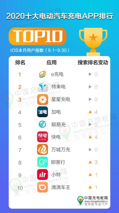 快电跻身十大电动汽车充电APP TOP10,成唯一上榜第三方公共充电平台