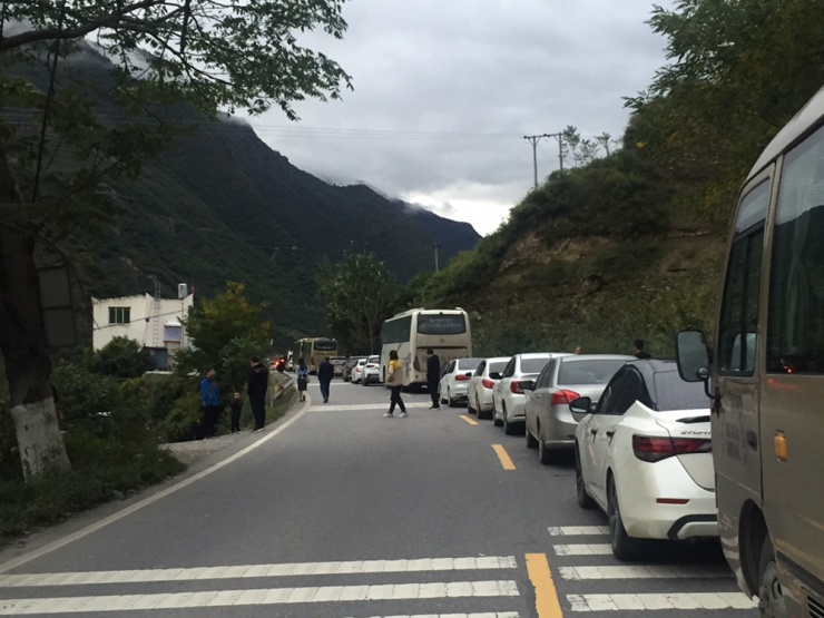 中午出发之前,谁也没想到大堵车会再次“上演”。下午4点左右,国道213再次突发泥石流,又一次将游客们堵在了路上。