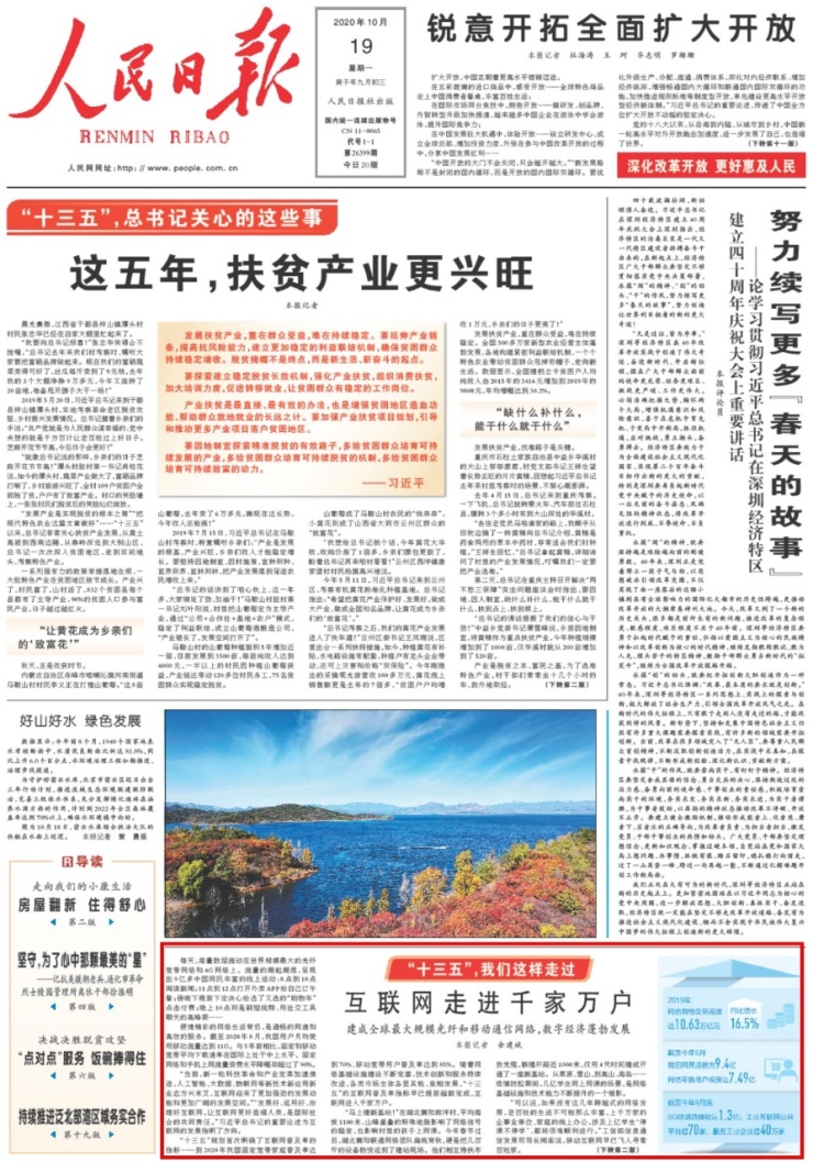 10月19日,《人民日报》头版刊发十三五系列报道之《互联网走进千家万户》,点赞美团优选等互联网应用服务,降低了互联网使用门槛,为百姓的日常生活带来便利,不断提升群众的获得感。