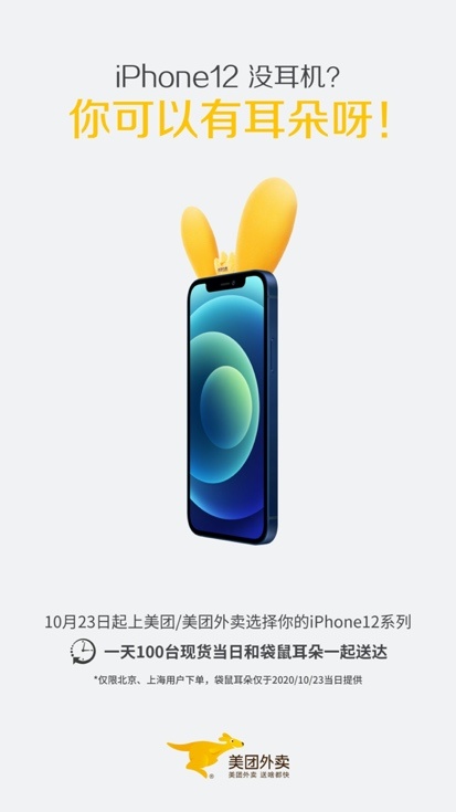 更何况,首次销售iPhone新品的美团闪购也借着此次官方配件取消耳机的热点“皮”了一下,为当日抢到手机的用户同步配送了美团“网红”商品袋鼠耳朵作为小礼品,以示“安慰”。