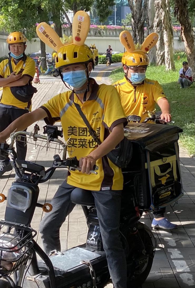 外卖小哥也成为本次活动一大“风景线”,美团外卖与探鱼联合,在广州、深圳、北京3城铺设1500个袋鼠耳朵进行炸街。
