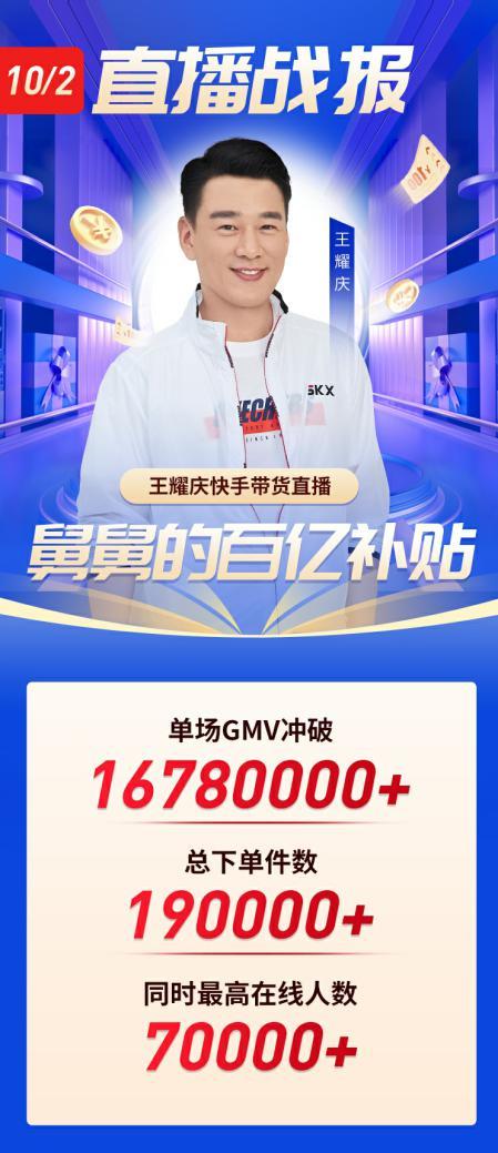 在经历连续14小时的高强度直播后,瑜大公子在遥望网络总裁方剑的劝说下才肯下播,直播间累计观看人数1020万、半小时销售额破3000万,销售数据最终停留在3.68亿,刷新瑜大公子单场最高GMV纪录。值得注意的是,与快手上拥有七、八千万粉丝的头部主播创造出破亿销售额不同,瑜大公子以1300万的粉丝体量开创了属于他的“带货奇迹”。