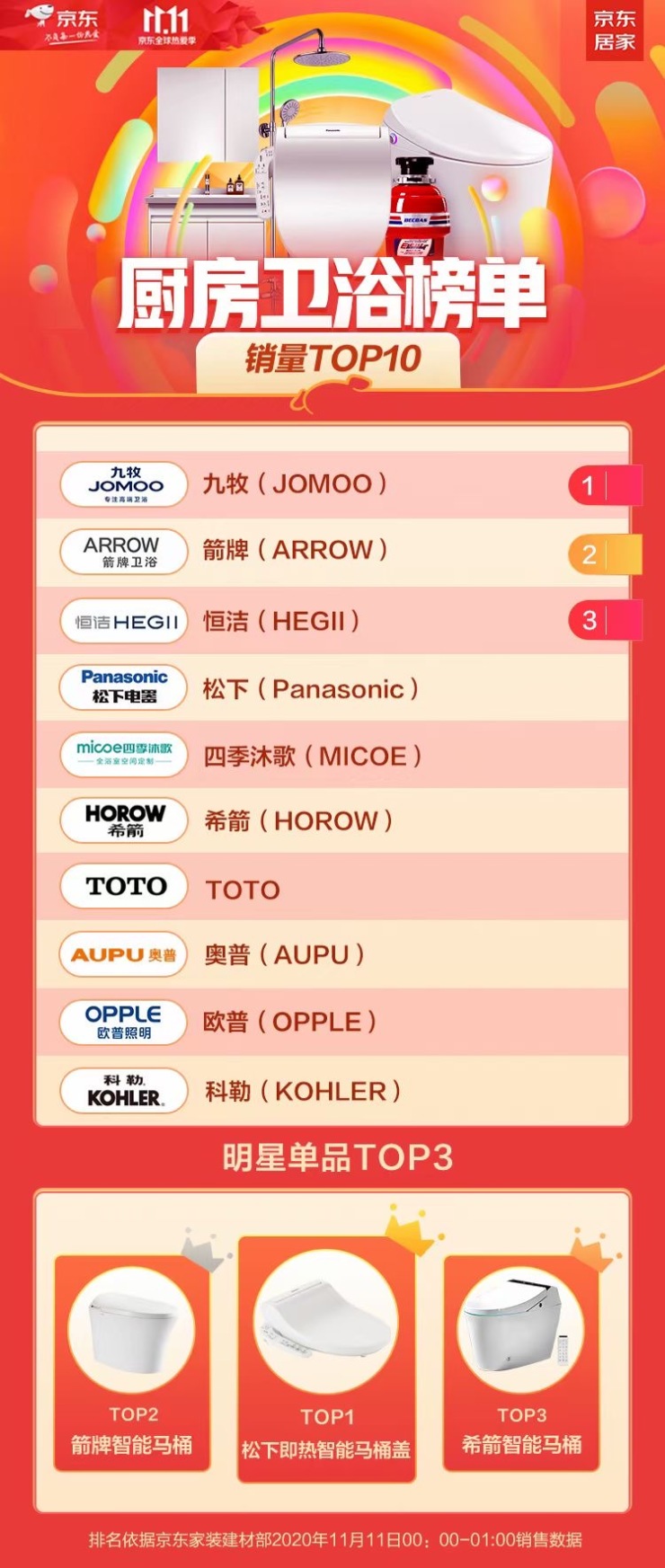 京东11.11卫浴品牌榜出炉!智能马桶霸榜明星单品