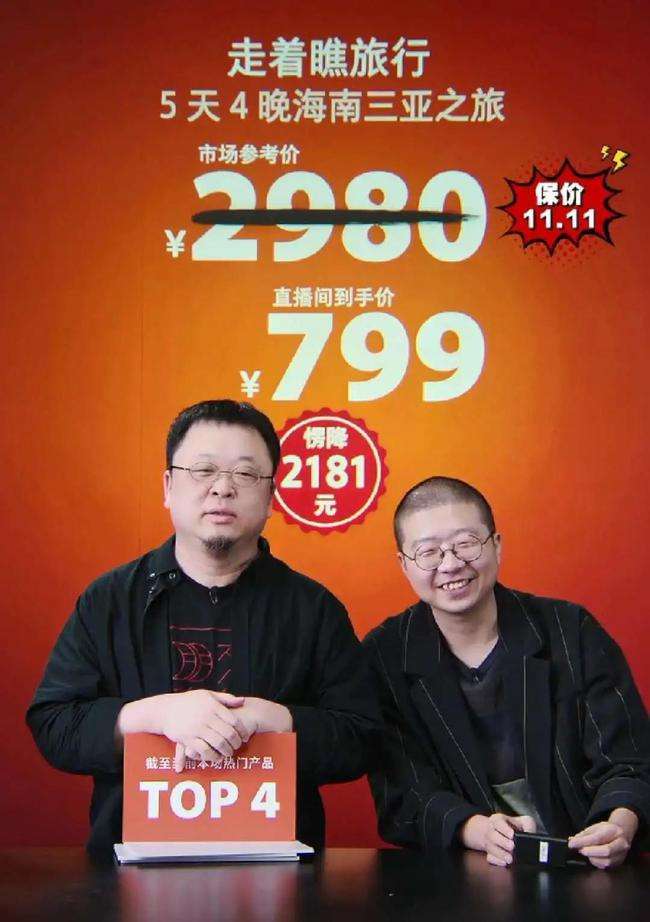 作为首次参加双十一的直播平台,抖音开设了11.11宠粉节,以罗永浩、张庭等明星为首的主播矩阵,大肆发放“福利”单品。以“交个朋友”开启卖货主播生涯的老罗,在“脱口秀大会”当完评委后也成功拖李诞入局,两人在直播间说着相声就把货卖了。
