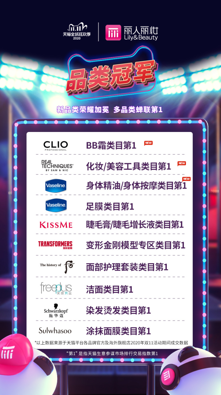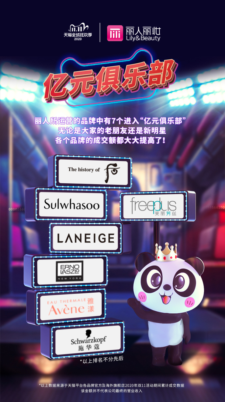 丽人丽妆双11战报出炉:运营品牌中7个进入“亿元俱乐部” 2020-11-13 来源: 未知 作者:admin 次阅读 2020年双11活动期间,根据天猫平台各品牌官方/海外旗舰店成交数据,丽人丽妆成交额超30亿元!合作伙伴后、雪花秀、芙丽芳丝、兰芝、奥伦纳素、雅漾、施华蔻进入“亿元俱乐部”。