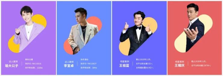 和瑜大公子同期开始孵化的主播李卓宣已经成为快手酒水类带货的头部主播,双十一期间单场带货超7000万。签约明星王耀庆和王祖蓝也是快手千万俱乐部的常客。