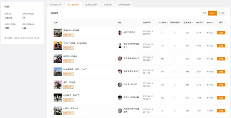 关于快手数据分析产品,遥望主要会用来监控竞品的数据情况。从商品的角度,会看品牌方还把货提供给哪些主播,价格优惠是怎样?从主播的角度,会分析别的主播为什么这次带货成功,带货不理想等等。