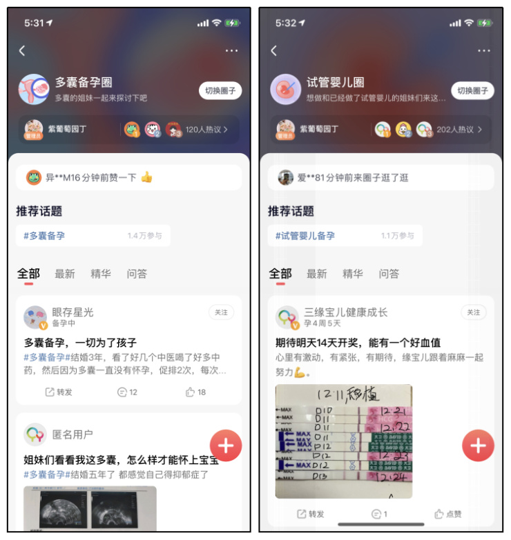 图:宝宝树“多囊备孕圈”&“试管婴儿圈”