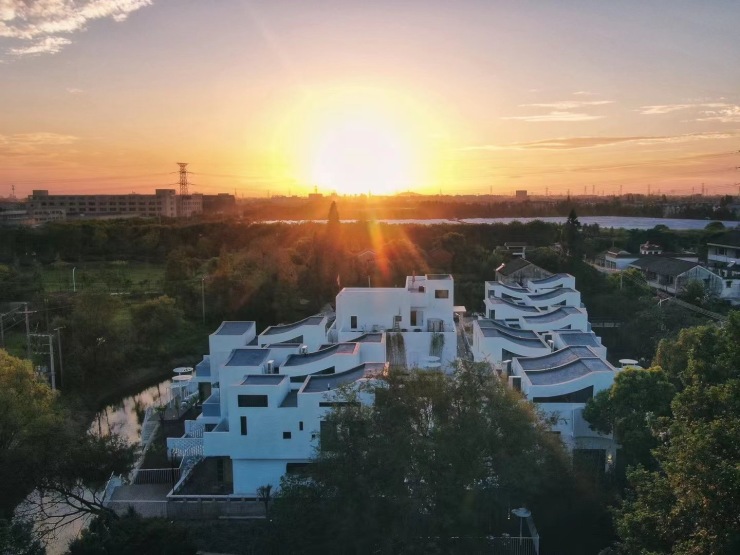 乡伴河山画圣浜理想村是国内首个以“丰子恺漫画”作为核心定位的文化主题村,项目规划围绕丰子恺乡愁漫画艺术、绿色自然教育和田园健康生活理念,集居住、休闲、商业、文旅功能为一体,包括精品民宿、文创生活、亲子乐园、双创中心、乡村市集等业态,以原乡生活为基准探索村落重建,旨在打造一个兼具传统庭院美学和现代生活功能的乡村社区。