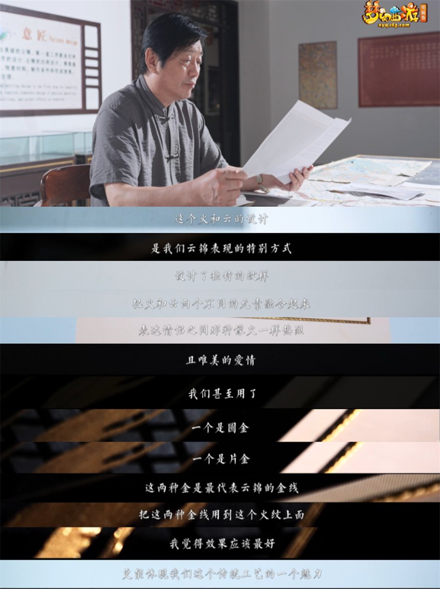 为迎接中国传统节日七夕佳节,《梦幻西游》电脑版于此节点推出七夕锦衣炽云缎,将云锦技艺和对爱人情感的展现放在了首位。周双喜在百般推敲后,决定将云锦中比较常见的火与云这两个元素结合成独特的纹样,并使用云锦工艺织造出来。火映射了爱人之间的浓情蜜意,云则暗示在火热的背后亦有温柔的守候,如此将七夕与云锦相结合,炽云缎就此诞生。