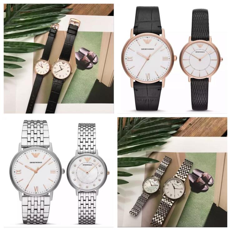 阿玛尼Emporio Armani的情侣腕表贯彻了品牌一向的高格调,完美诠释了优雅与时尚之间的和谐统一。时尚皮带石英情侣表,简单双针营造简约美感,皮质表带在男女款上做了巧妙的细节处理,男款表带纹路简洁大气,而女款则选择了较为精致的细纹。钢制表带防水情侣表风格更为商务,银色钢制表带与玫瑰金色表针呼应,高级又不失一丝灵动,实为通勤使用首选。