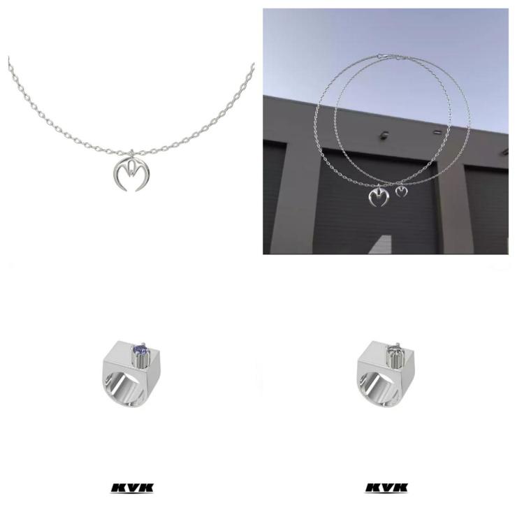 当然,要留心才能发现的情侣小配饰也必然暗藏巧思。最近兴起的国潮品牌KVK就广受明星、时尚达人们的追捧。蜘蛛符号吊坠的情侣项链以蜘蛛为原型作秩序构建,通过纤细锋锐的视觉造型,营造出纤细与危险的特征。潜能系列电光方形单钻情侣戒指通过对灵数9与基础音符的抽象与重构,重塑现实与理想之间的距离。