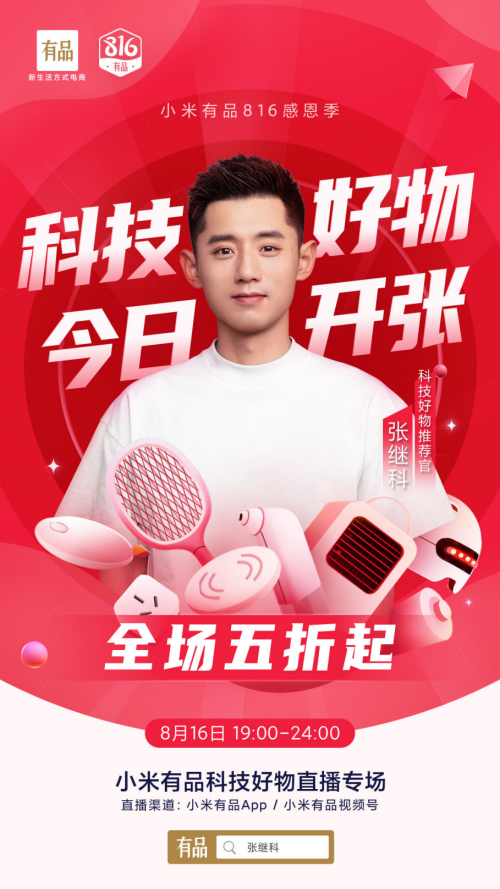 8月16日晚19时,记得锁定小米有品App和视频号,与张继科一起探索科技好物背后的“独门秘籍”。