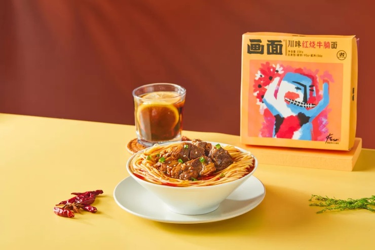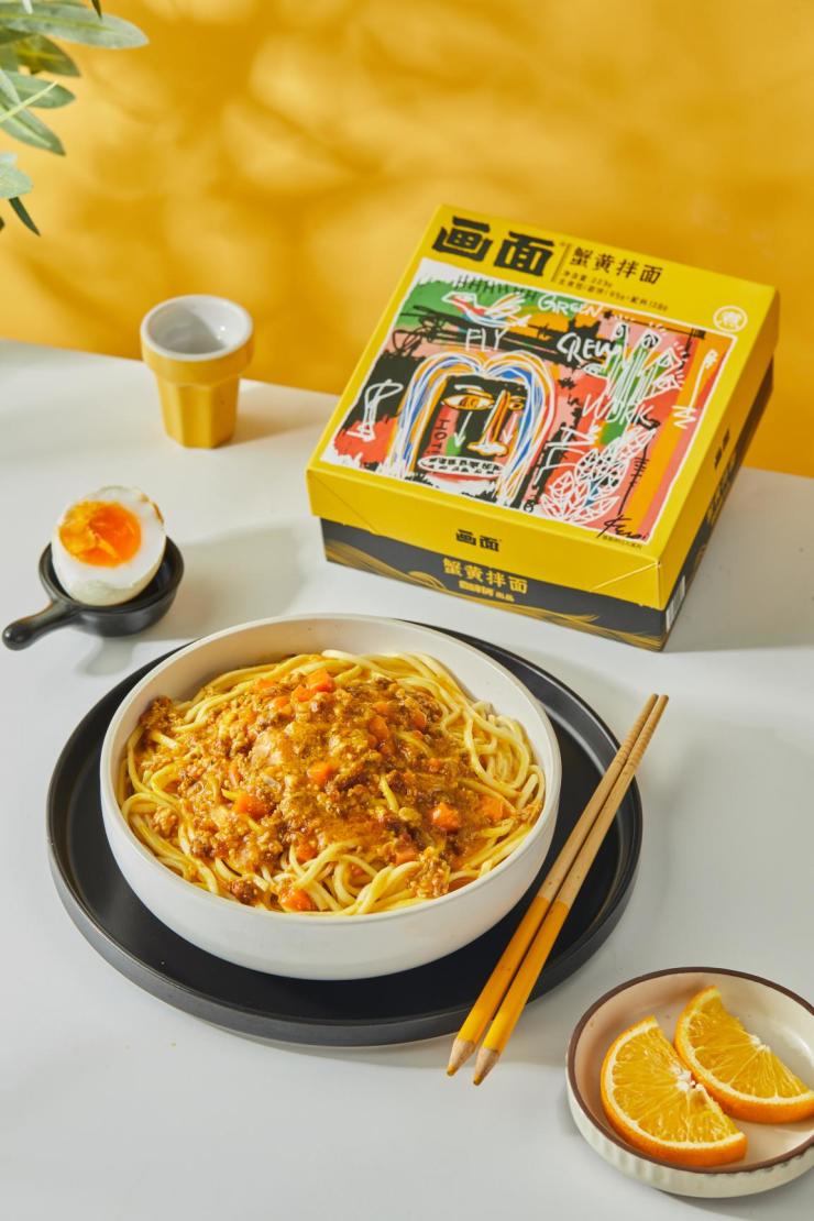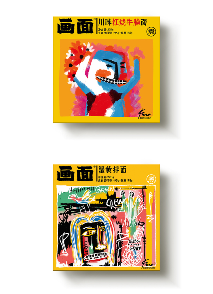 画面高颜值的包装设计,和以前市面上的袋装面食很不一样。乍一看,似乎卖的不是面,而是一幅幅艺术画。这也贴合了品牌名“画面”:面在画中,画在面上。