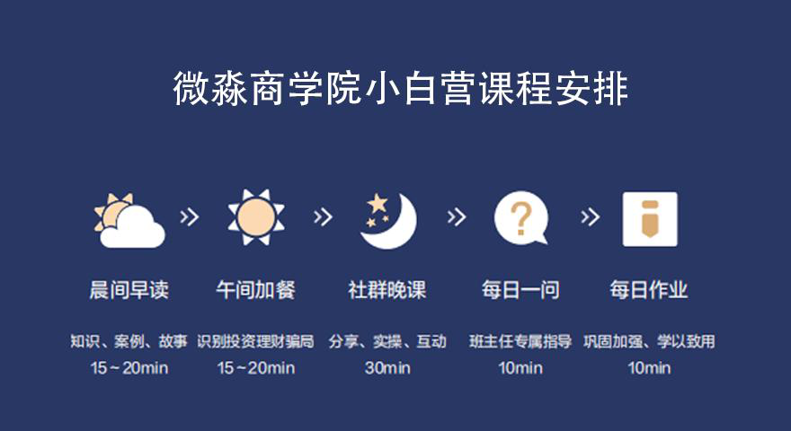 据了解,微淼商学院作为一家理财实践线上教学模式创新者,正是看到了这一点,经过近1年的课程筹备后,面向零基础理财人群推出了入门级课程产品——“小白训练营”。