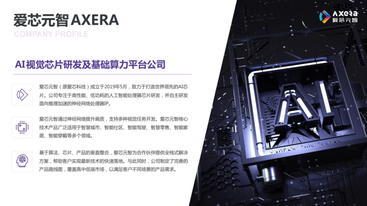 除了名称上的变更,在此次品牌升级中,爱芯元智还传达了公司的全新发展方向——将更加注重边缘侧和端侧的人工智能芯片研发,将AI的能力发挥到极致,为世界的数字化和智能化新基建提供边缘侧和端侧的支持。