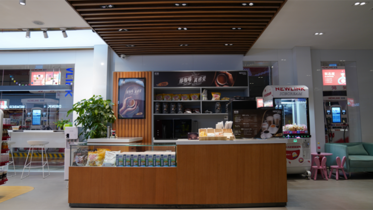 便利店在一些油站中也经常看到,不过能链综合能源港的便利店看起来更高大上一些。基于能链LOGO的红白色系装潢、考究的美陈设计,与油站外观呼应,给人非常舒服的视觉享受。店内商品也是琳琅满目,有车主喜欢的进口零食、饮品、汽车用品,还有抓娃娃机,供车主及家人消遣娱乐。