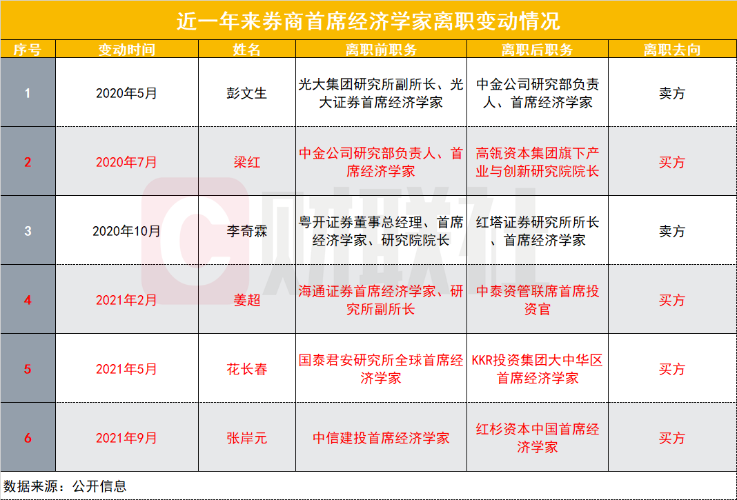 转会其他卖方研究所也是不少首席经济学家的职业选择。