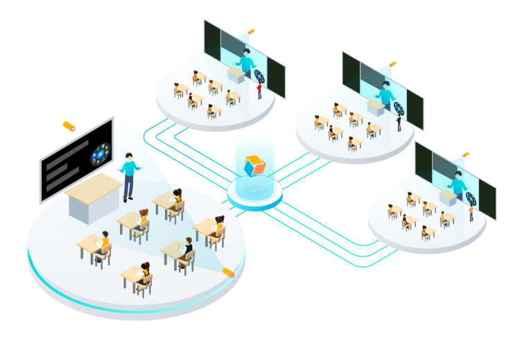 具体而言,腾讯教育为师生提供本地课堂、同步课堂、直播课堂等多种教学形式,让来自不同发展水平地区的老师,都能够根据学生的个性化需求,进行针对性的资源匹配与教学活动。以双师课堂为例,只需一块屏幕,即可支持一个主讲教室和多个听课教室同步的互动与学习,共享优质教师资源。