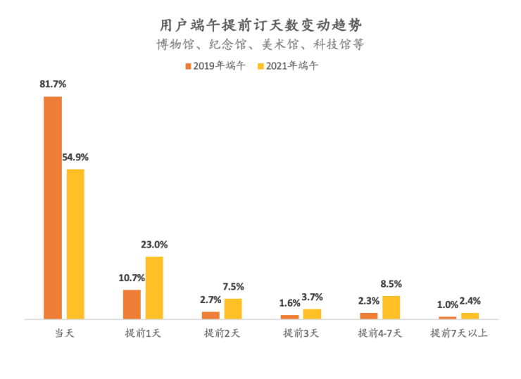 图:2021年至今较2019年 用户提前订天数变动趋势