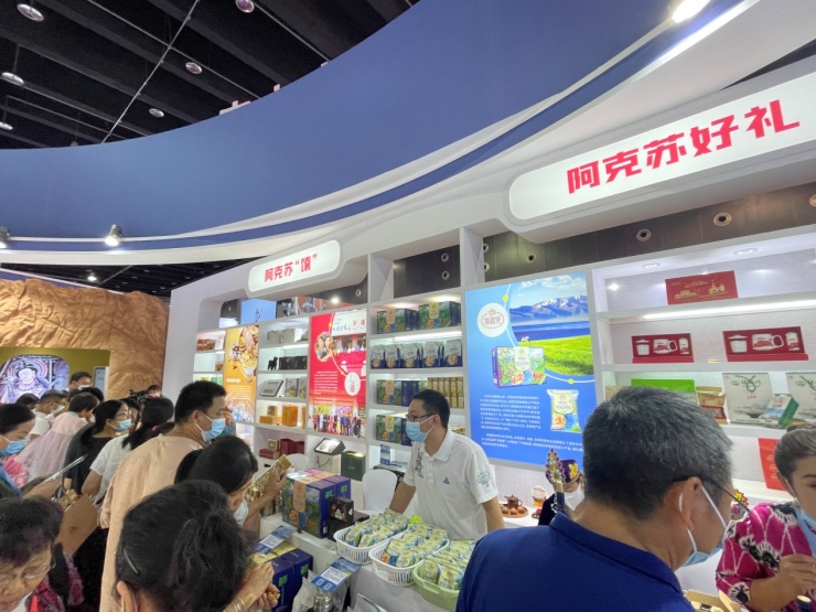其中,第二次参展的新疆展区,再创游览人数与产品订单量的新高。展区负责人徐国洪表示,去年,阿克苏就联合阿拉尔,在浙江省援疆指挥部的支持下,首次组团亮相展会,3天时间,200平方米的“我爱浙疆·共创未来”展区曝光量就达到了1000多万人次。