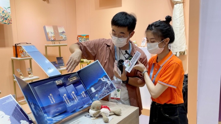 “万里雄关”“点赞将军俑”“东方明珠”“断桥相会”……文创雪糕的展位上,慕名而来的游客络绎不绝。展位负责人张磊告诉记者,展位包括他在内一共有四名员工,这三天以来,每天都是从开馆一直卖到闭馆,忙碌程度不亚于产品在景区初上线时的火爆,期间也收获了不少合作意向。