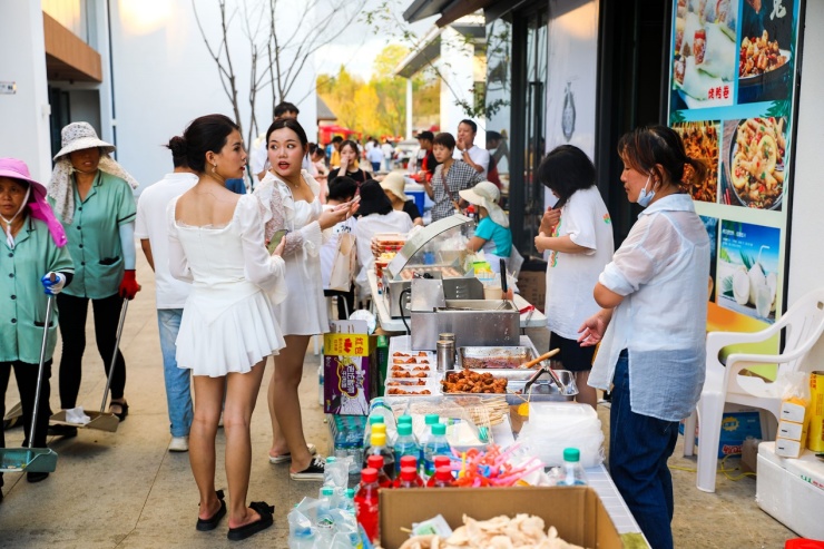 高岭·中国村火了,其周边地区的村民也享受到了“旅游+景区+乡村振兴”带来的实惠。通过“旅游+景区”促进了村庄发展、带动了村民致富,也成为高岭·中国村别具一格的乡村振兴新模式。国庆假期,景区吸引了来自四面八方的游客,大家在欣赏美景的同时,还能感受浮梁烟火气息、品尝特色小吃。特产店里的生意也随着景区的火爆而火起来,外地游客来这基本上都会带上几样特产返程。村民就业当老板,地摊经济成为景区周边群众增收致富的新渠道。在花开幸福里曾经普通的小村庄,如今更是摇身一变成为高端民宿集群,也成为了摇钱树。