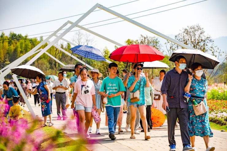十一期间,高岭·中国村举办了丰富多彩的活动,如大唐茶市唐风沉浸式演出、高岭之舞蹈表演、草坪音乐会、趣味小游戏、网红打卡、手作体验等特色。同时,对所有游客免大门票,核心景点如大唐茶市等也推出日间唐风演艺小镇街区表演免票政策。十一期间,游客既可以穿越到唐朝,品尝着美味的小吃,欣赏激昂优美的舞蹈;也可以漫步在千亩花海,来一场“花为媒”的浪漫邂逅;此外,像热气球、滑翔伞、或在茶海中拍大片、爬山、5D动感之旅……以更多动感、活力、快乐的体验吸引更多游客走进景区,为祖国建设成就、为乡村振兴点赞!