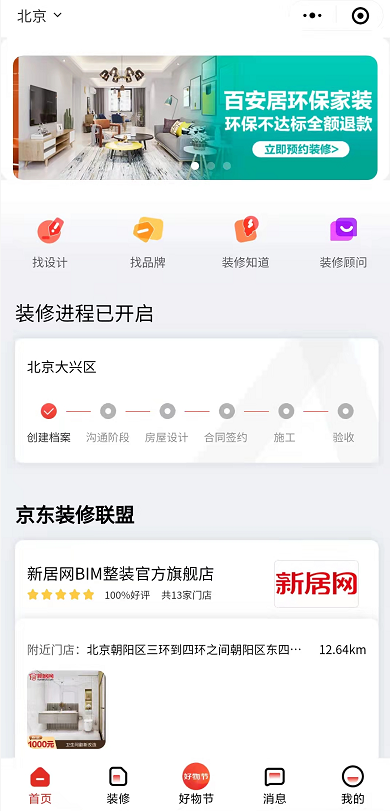 其中,由百安居承接的“超级客服”,能通过专业的线下装修客服,为用户提供专业建议,将疑惑化解在装修之前。不知如何挑选建材、家具、家居的消费者,不妨认准京东“家装联盟”标识购买。京东装修根据行业口碑、品牌影响力、交付质量、运营能力等维度优选平台商家,帮助消费者甄选口碑好、质量高的商家,从而获得优质高效服务。此外,京东装修小程序能帮用户找到距离近、服务优的装修公司,窝者频道的优秀装修案例,也能为用户提供借鉴参考。