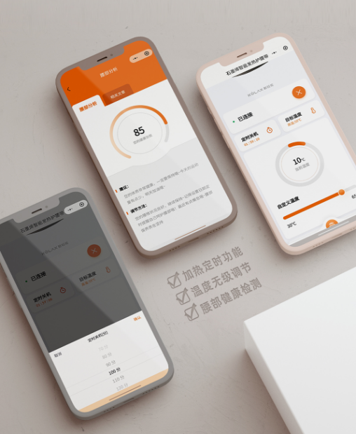 伴随智能系统的加持,这款护腰带通过连接微信小程序,温暖可精确到每一度,并同时显示在手机和腰带的屏显中,让你随心调节舒适的温度。