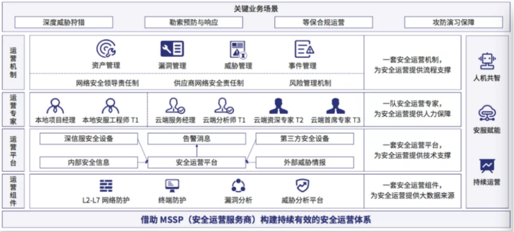 “人机共智”模式从“资产、漏洞、威胁、事件”四个抓手建立了一套系统化、标准化、持续化的安全风险管理和安全运营管理方案,全方位地保障SCMC的业务安全。