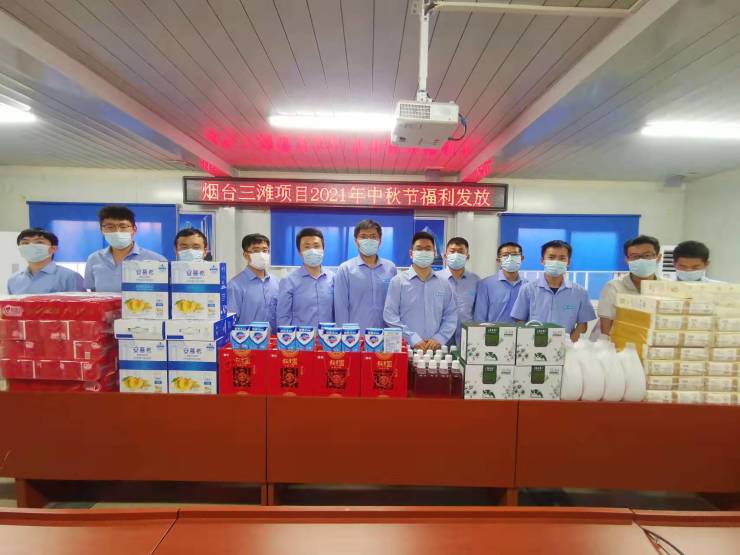 1月30日、9月18日,传统佳节到来之际,烟台三滩项目组织全体劳务工人开展各种“春节”和“喜迎中秋,欢度佳节”节前安全教育,牢固树立节日不忘安全的理念;坚持以为群众做实事活动为主旨,为农民工工友和项目管理人员发放春节和中秋慰问礼品,祝愿“大家节日快乐,身体健康,工作顺利”,感谢大家一直以来为项目的辛勤工作付出,并通过电话为远在家乡的亲人送去项目节日的祝福。