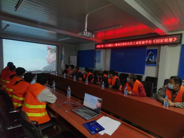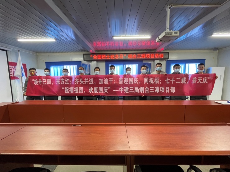 烟台三滩项目部发挥央企党建思想引领作用,在庆祝中国共产党成立100周年之际,陆续开展加强员工思想政治教育工作,分时间点组织收看了《1921》、“9.30烈士纪念日”直播、《长津湖》爱国影片和进行升国旗仪式等,深刻纪念烈士和人民英雄,铭记历史,项目部以“纪念烈士,致敬英雄” “砥砺前行,努力奋斗”为主题,收看相关影片及视频直播加强学习,深入的进行思想政治教育;每一次的纪念都是对历史的纪念,都是为了全新的出发,通过观影和纪念活动,耕续英雄的精神,砥砺前行,努力奋斗,增强员工在各自工作岗位上为公司、祖国建设贡献力量的责任感,传递温暖强化央企听党话,跟党走的央企热情,为“学党史·更党走·感党恩”主题活动进一步充实为群众办实事系列活动。