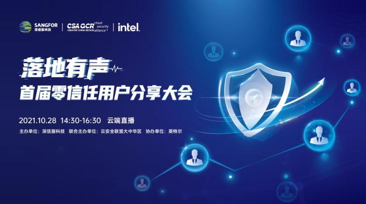 据悉,深信服携手云安全联盟大中华区(CSA GCR)、Intel英特尔,将在10月28日下午14:30举办“落地有声”首届零信任用户分享大会。