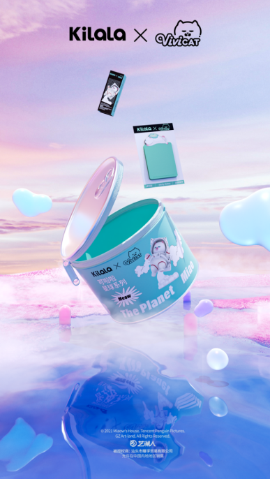 诞生于2019年的ViViCat是这次品牌联名的主角之一。它自诞生以来,就以古怪呆萌、自恋傲娇、慵懒搞怪、松弛放松的猫咪形象成为了潮玩市场中的大热焦点。ViViCat的火爆是踩准了当下年轻人对于内卷生活的厌恶,切中了他们向往躺平生活的心理诉求。而可啦啦选择与ViViCat联名也正是得益于消费者洞察,精准抓住Z世代年轻人喜好的“云吸猫”和爆红的盲盒经济,进行品牌延展,将自身的品牌延展到ViViCat的受众圈层,撬动潮玩圈层的人群,提升品牌的潮流属性。