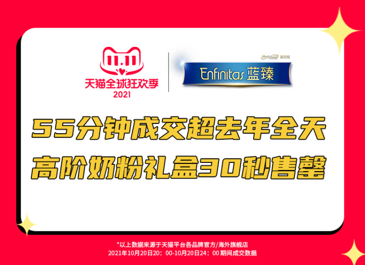 1小时成交超去年全天,丽人丽妆美赞臣蓝臻2021双11奶粉火爆热销