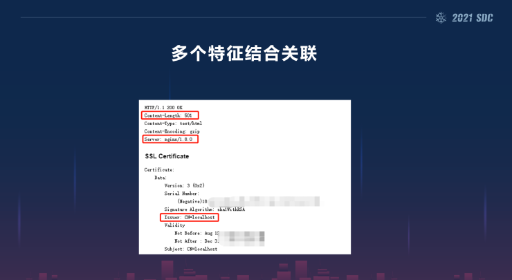 除了上述提到的方法,依据 SSL 证书的强关联特性,深信服蓝军高级威胁攻防研究团队发现海莲花组织的 C&C 服务器往往采用自签名证书,通过“筛查自签名证书的网络资产,限定选择返回的数据长度 501 字节,且服务端组件为‘nginx 1.8.0’”的方式,深信服蓝军高级威胁攻防研究团队又发现了其中属于海莲花组织的网络资产。