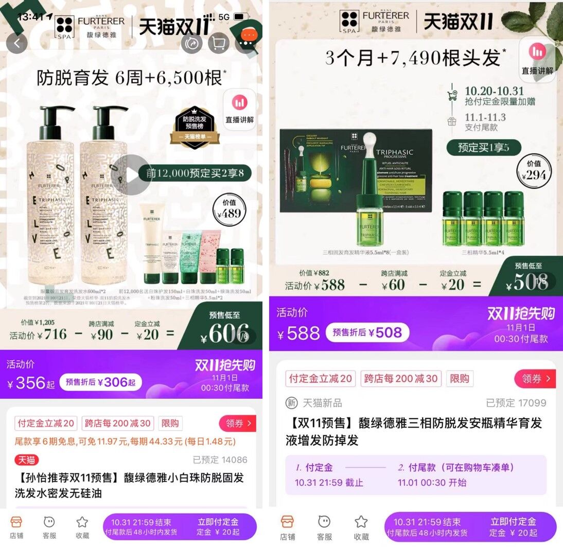丽人丽妆助力皮尔法伯2021双11,馥绿德雅防脱固发产品热销