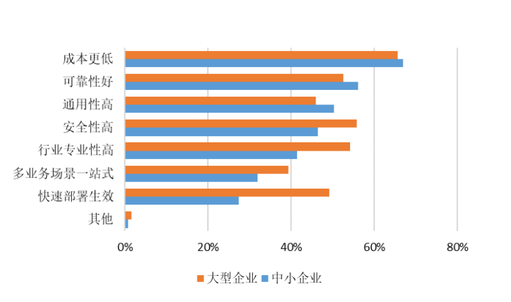 同时,报告还分析了中小企业与大型企业在数字化采购中的差异。相比大型企业,中小企业更多通过数字化采购满足其办公用品等经营需求,而大型企业在通过数字化采购服务和方案满足其生产需求方面领先于中小企业。此外,面对数字化采购领域的转型升级需求,中小企业更加注重成本、可靠性和通用性;大型企业则更关注安全性、专业性和部署效率。