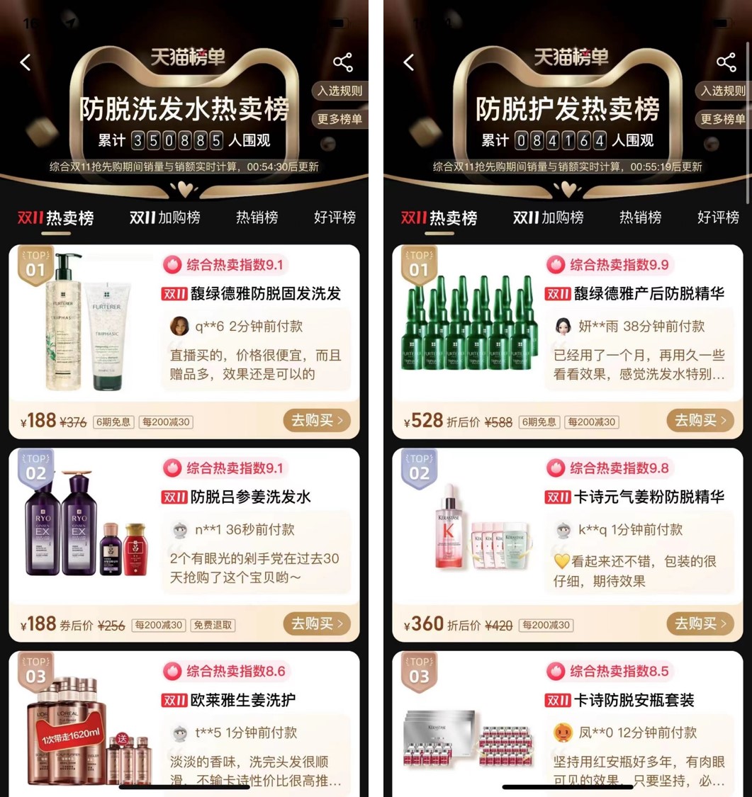 丽人丽妆馥绿德雅双11开门红,防脱产品拿下天猫热卖榜第一!