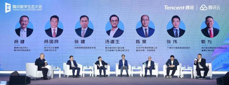 在11月3日举办的2021腾讯数字生态大会上,腾讯公司高级执行副总裁、云与智慧产业事业群总裁汤道生,腾讯研究院总顾问杨健与武汉市卫生健康信息中心、招商局集团、东风汽车、宁德时代、神州数码等组织代表及企业领袖在圆桌环节齐聚一堂,围绕“数实融合”,分享了不同产业的数字化亮点,共同描绘产业互联网生机勃勃的新局面,并对产业互联网在社会价值持续创新的使命下的新机遇进行了展望。