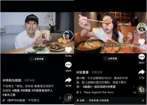 当用户刷到上述视频内容时,天然失去抵抗力,在更重要的因素决策上,口味已经不是第一考虑,赢得消费者认同和情感信赖,其次才考虑到好吃才是硬道理。这就是我们说的好素材,兼顾品宣同时触达购买行为转化。