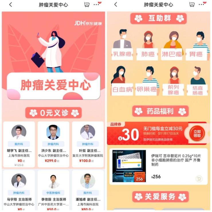 (京东大药房肿瘤馆“肿瘤关爱中心”页面)