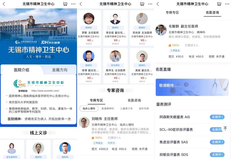 高效连接医疗资源 京东健康上线无锡市精卫中心专区