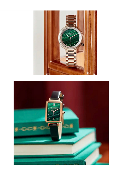 此外,在京东11.11期间表现亮眼的女表品牌Lola Rose,也以超值价格带来江疏影同款经典小绿表,以孔雀石纹理与方盘设计点亮腕间造型。品牌圆形表盘小绿表也在京东推出,契合下午茶文化,展现女性在忙碌生活中的优雅。