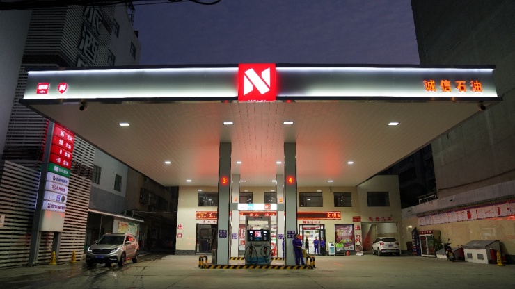 最近,位于河南省登封市的能链便利诚信加油站重装开业,这家经营了18年的加油站老店一改以红色为主的单调形象,采用白色极简风格,红色标识点缀其中,再加上横贯四周的LED灯带,给人以时尚、新潮、整洁的视觉感受,使其从当地众多加油站中脱颖而出。