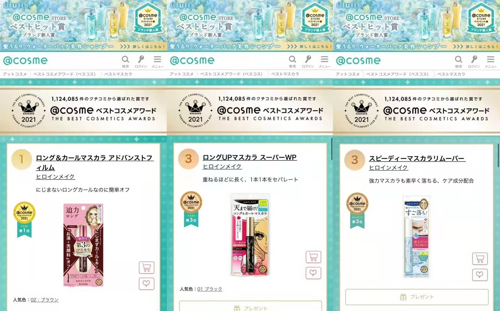2021日本cosme美妆大赏出炉,KISSME睫毛膏上榜
