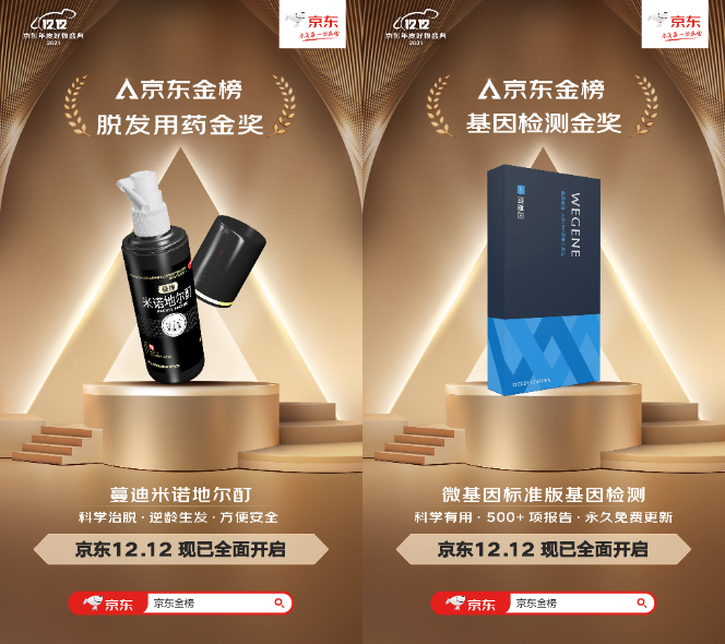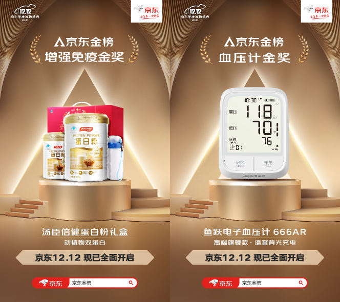 今年,京东健康参与12.12京东金榜并评出:基因检测、冬虫夏草、燕窝、补益类用药、脱发用药、呼吸机、血压计、养肝护肝、增强免疫9个榜单。其中,燕小厨优孕燕窝月套餐、鱼跃电子血压计666AR、微基因标准版基因检测、蔓迪米诺地尔酊、汤臣倍健蛋白粉礼盒等多款健康好物荣获2021年度百大金奖。